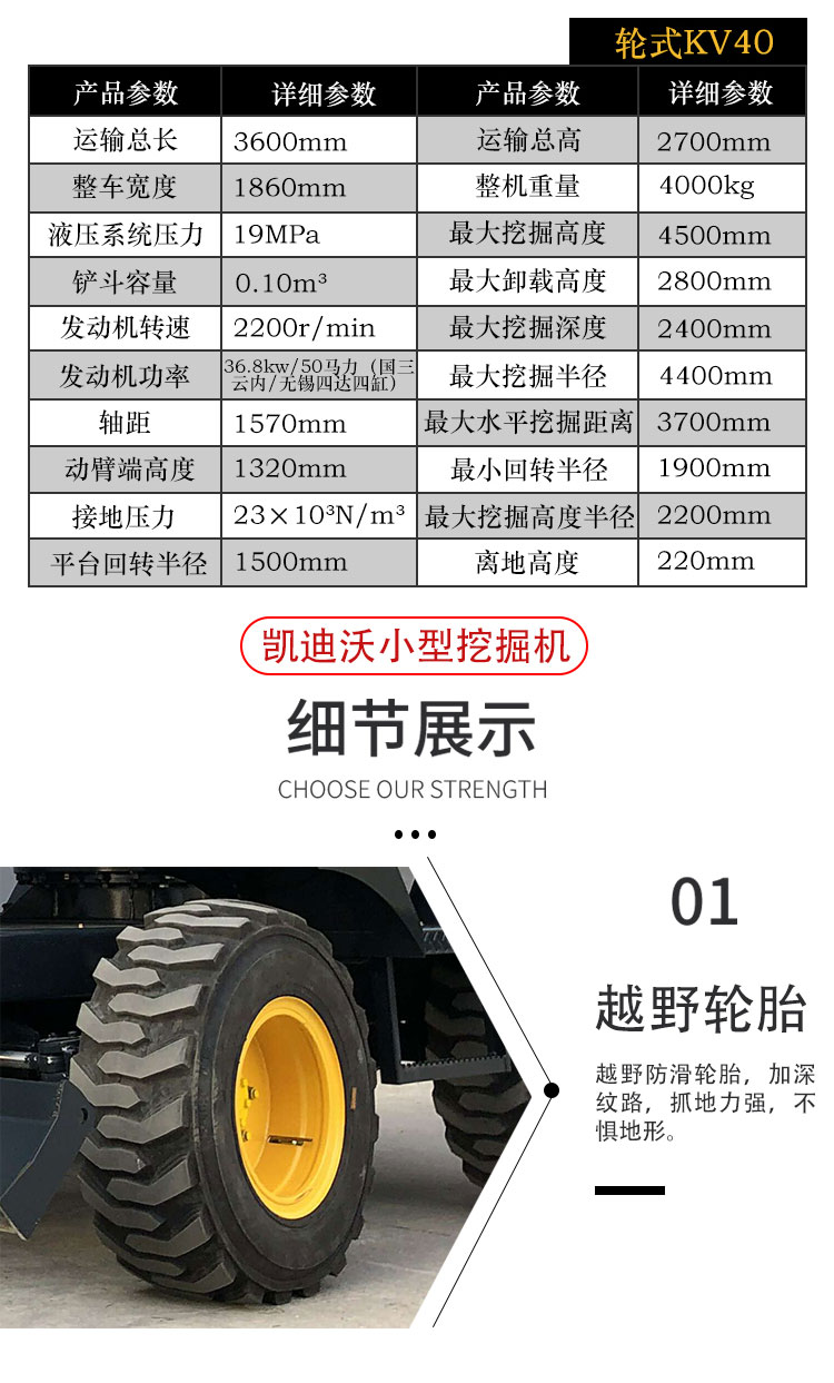 整機重量:4000kg運輸總長:3600mm發動機功率:36.8kw