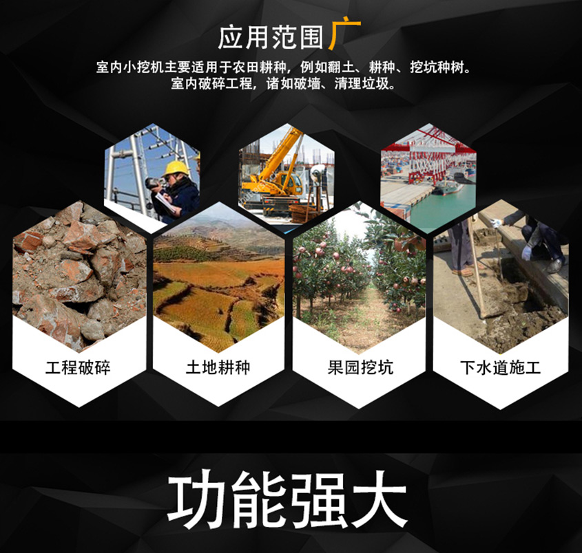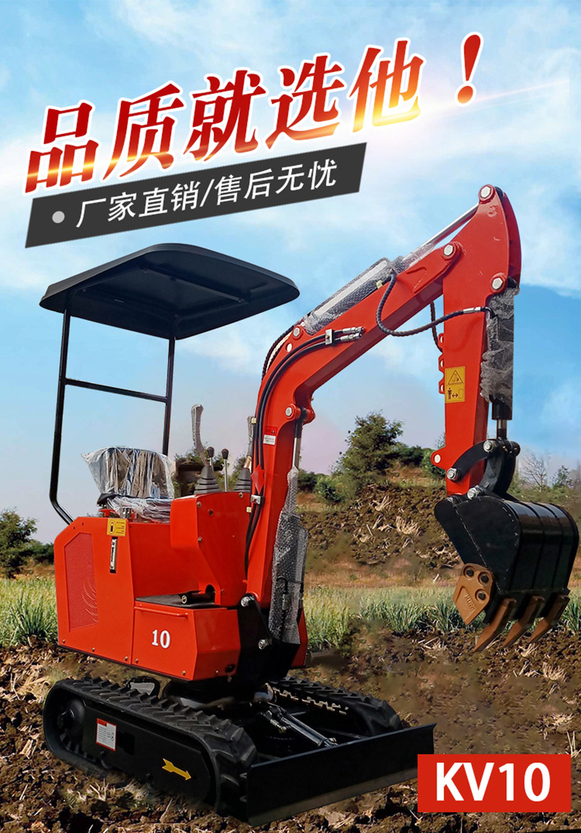 新款KV10小型挖掘機適合蔬菜大棚的土地疏松,市政部門的園林綠化、果園苗圃栽挖坑,混凝土路面破碎,砂石料攪拌,空間狹小的施工作業等。